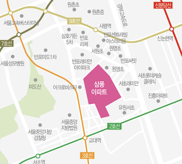 1988년 준공한 삼풍아파트는 서초법조타운과 근거리에 위치해 법조인이 많이 거주하는 단지로 알려져 있습니다.