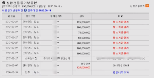 등기부를 보면 전부 저축 은행이 근저당이 설정되어 있습니다.