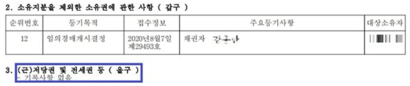 그래서 경매를 하기 전 파악해야 하는 것이 바로 해당 부동산의 등기부 등본입니다.