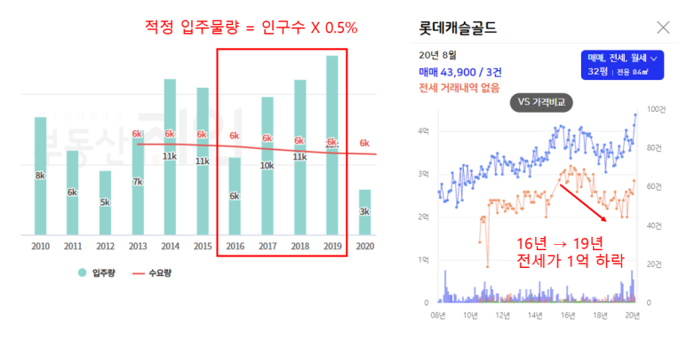 하지만 공급이 많다고 무조건 매매가가 떨어지는 것은 아닙니다. 물량이 많이 시기가 1,2년 정도로 짧다면 전세가에는 영향을 주지만 매매가에는 영향을 주지 않습니다. 만약, 내가 입주물량을 파악하고 리스크를 대비하면서 역전세를 예상하고 대응만 한다면 이런 물건도 투자하지 못할 이유는 없습니다.