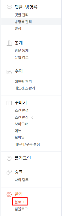 관리-카테고리 추가는 주제에 맞게 설정합니다. 전문적인 주제를 한가지로 일관성 있게 해야 하기 때문에 한 가지 카테고리를 설정하는 것이 좋습니다.