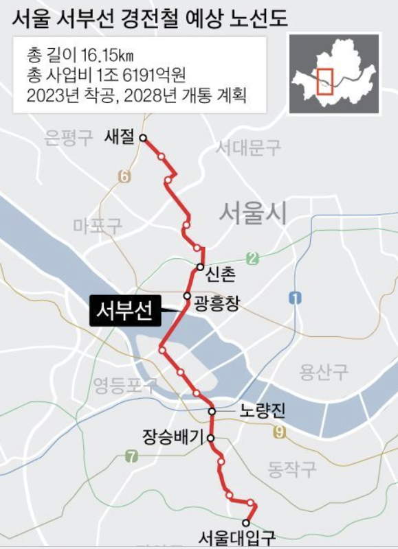 특히 서울대 입구역과 새절역을 잇는 서부선의 경우 여의도에만 3개의 정차역이 신설될 예정입니다. 서부선의 경우 2028년 개통을 목표로 하고 있는데, 시범아파트 인근 한양아파트 앞 사거리에 신설역이 설치됩니다. 8.2점입니다.