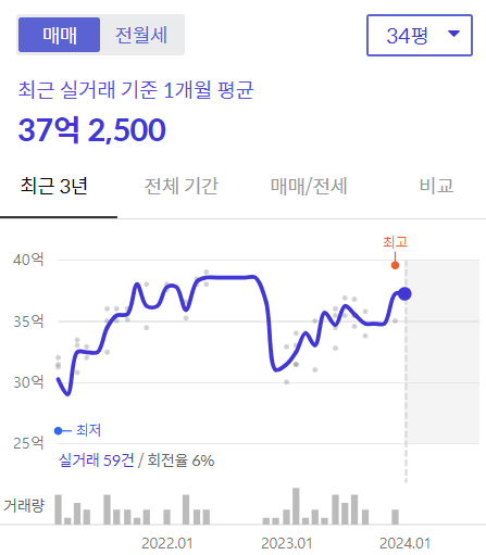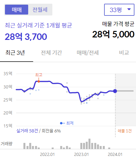 반포 래미안퍼스티지는 36억대 가격으로 거래가 형성되고 있습니다.