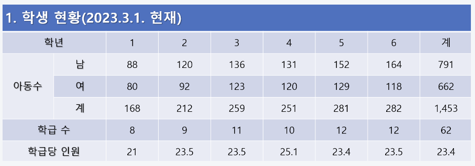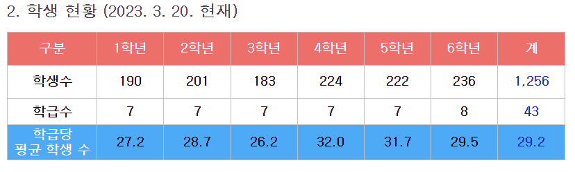 대도초등학교는 전교생 2000명에 육박합니다. 1학년 대비 6학년이 6개나 더 많은 전형적인 학군지입니다. 이 의미는 고학년 학부모들이 인근 중학교로 입학하기 위해 이 학교로 전학을 온다는 의미입니다.