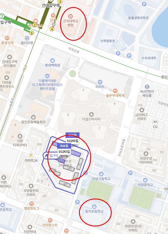 그럼 대형병원과 학생 수많은 초등학교 인근 단지를 살펴보도록 하겠습니다.